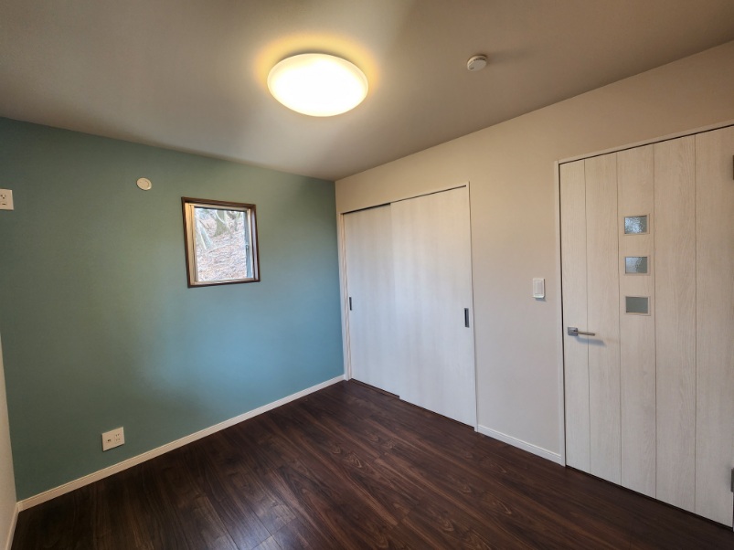 1階洋室 1面だけ、爽やかな色の壁紙を貼りました